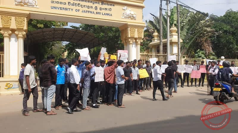 தையிட்டி விகாரைக்கு எதிராக யாழ்ப்பாண பல்கலைக்கழக மாணவர்கள் பல்கலைக்கழகம் முன்பாக இன்று (22/12) போராட்டத்தினை முன்னெடுத்திருந்தனர்.