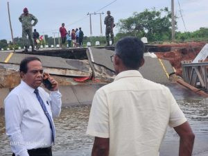 குறித்த பாலத்தின்  நீரோட்டம் குறைந்ததும் தற்காலிகமாக குறித்த பாலத்தினால் போக்குவரத்து செய்யக்கூடிய வகையில் திருத்த வேலைகள் ஆரம்பிக்கப்படும் என மாவட்ட அரசாங்க அதிபர்  தெரிவித்துள்ளமை குறிப்பிடத்தக்கது